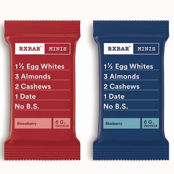 Perfectly sized to fit in your pocket, this RX Bar Minis variety pack delivers all the real fruit flavor you're looking for in a mini, portable size. Take these protein bars with you on your next errand run, on the way to the gym, or when you're just snacking at your desk. With ingredients you can recognize egg whites, almonds, cashews, dates, and real strawberries or blueberries, take a bite of sweet goodness and enjoy 6 g of protein when you need it most.