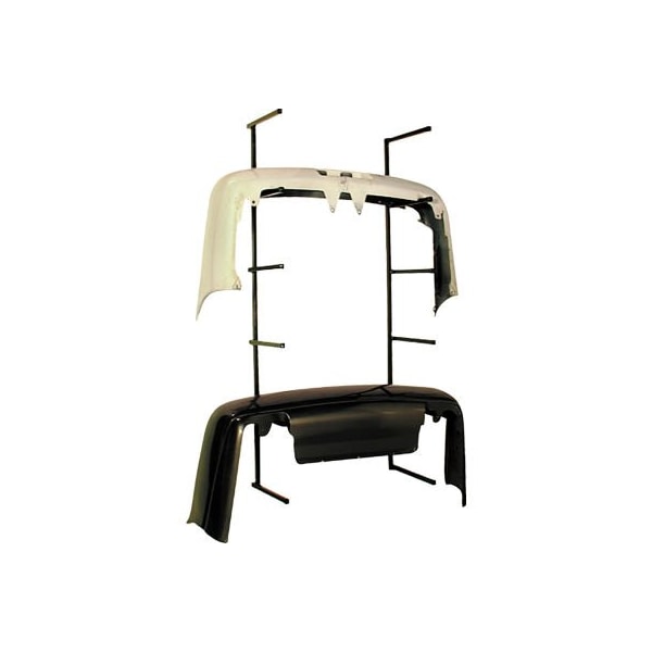 The keysco bumper rack mounts to a wall to save valuable shop floor space. arms fold down to take up very little space when not in use. the rack holds up to six bumpers or more. constructed of 1 inch steel tubing with 18 inch arms and 15 inches between each arm. Used to protect and organize your bumpers.