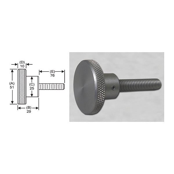 Knrl Knob Stud,M10,51mm dia.,76mm,SS