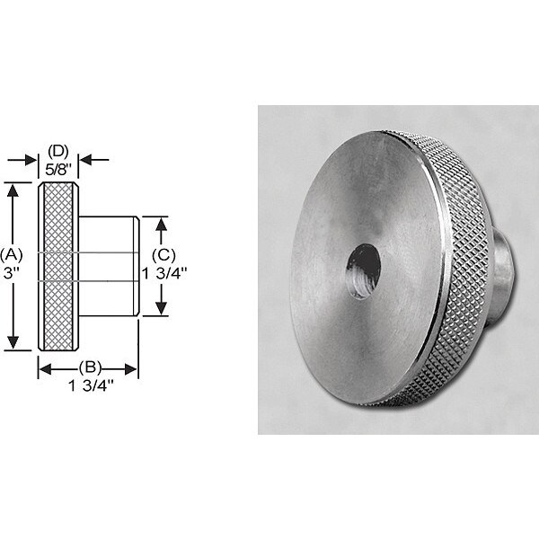 Knurled Knob,Ream,Ns Screw,3/4 In.,3 In. dia.