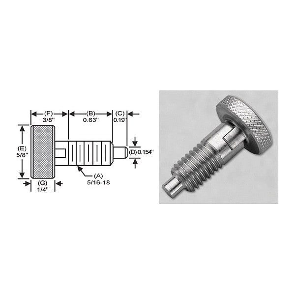 Knurled Lck Knob,303SS,Nose P,5/16-18 In.