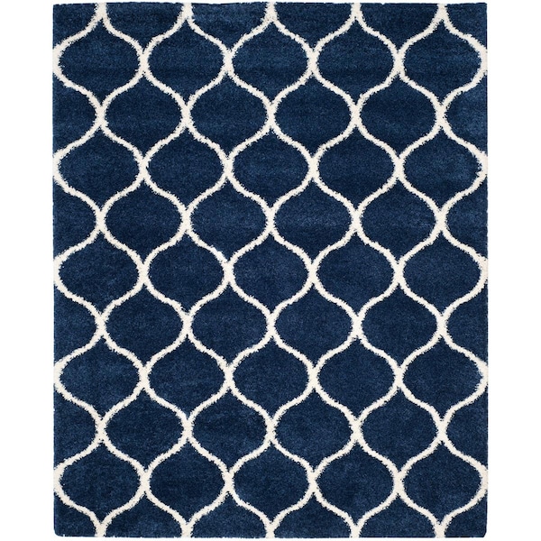 10 x 14 ft. Hudson Shag Power Loomed Large Rectangular Area Rug; Navy & Ivory (Discontinued)