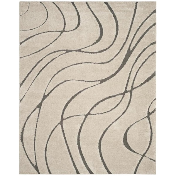 11 x 15 ft. Shag Rectangle Area Rug; Cream & Grey (Discontinued)