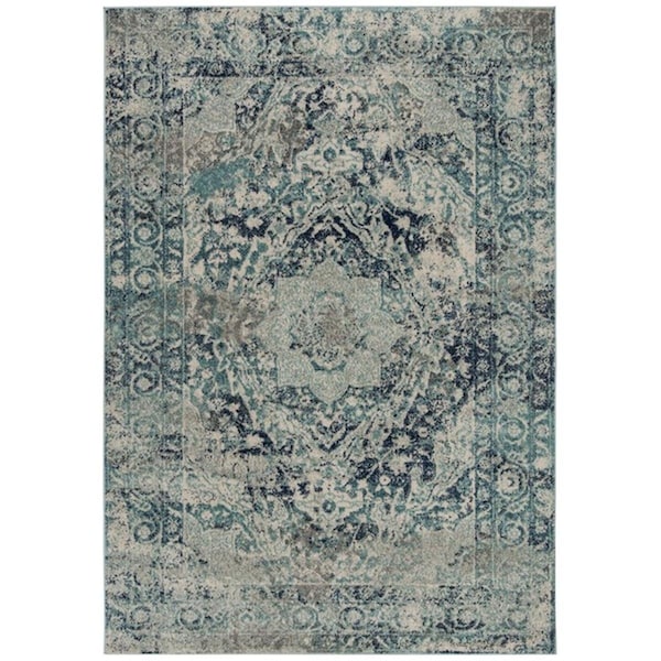 2 ft. 3 in. x 10 ft. Madison Rectangle Power-Loomed Rug - Ivory & Blue (Discontinued)