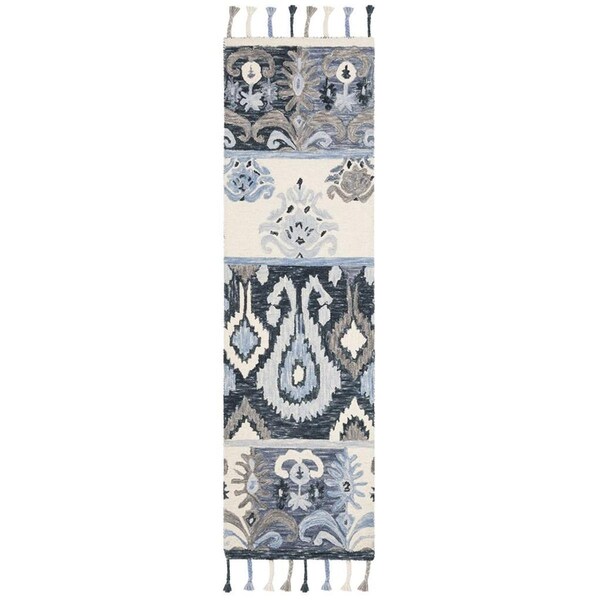 2 ft.-3 in. x 8 ft. Suzani Hand Hooked Runner Area RugBlue & Ivory (Discontinued)