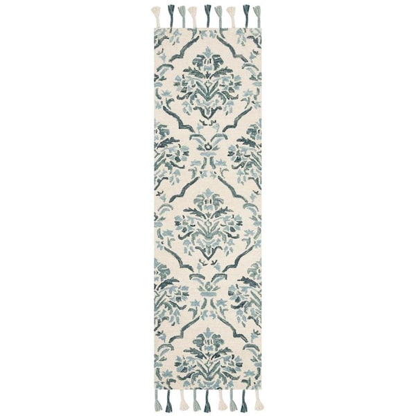 2 ft.-3 in. x 8 ft. Suzani Hand Hooked Runner Area RugIvory & Turquoise (Discontinued)