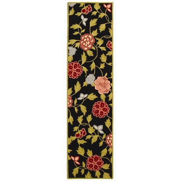 2 ft. 6 in. x 10 ft. Runner Transitional Chelsea Black and Green Hand Hooked Rug (Discontinued)