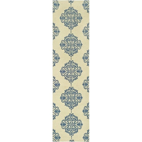 2 ft. - 6 in. x 12 ft. Runner- Transitional Chelsea Ivory And Blue Hand Hooked Rug (Discontinued)