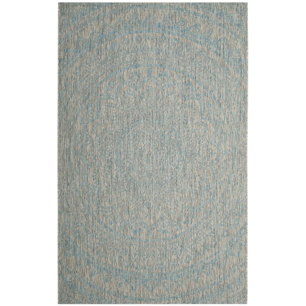 2 ft. x 3 ft.-7 in. Courtyard Accent Rug - Light Grey & Aqua (Discontinued)