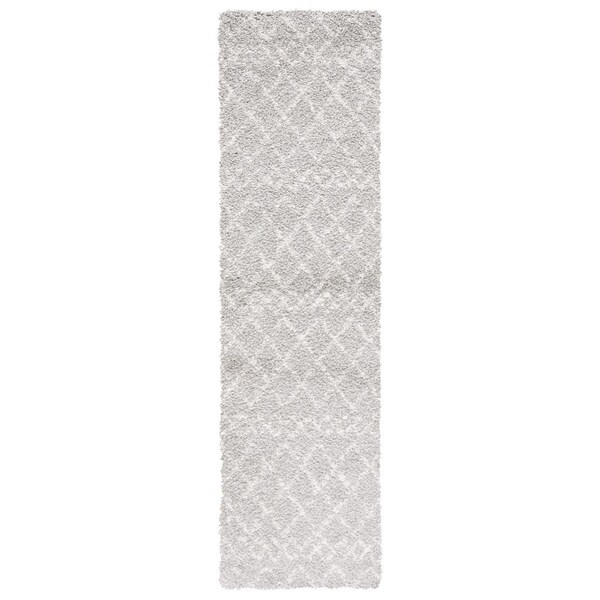 2 x 10 ft. Berber Shag Power Loomed Runner Area Rug; Light Grey & Cream (Discontinued)