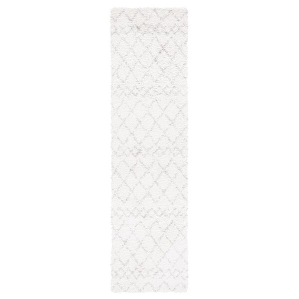 2 x 14 ft. Berber Shag Power Loomed Runner Area Rug; Cream & Light Grey (Discontinued)