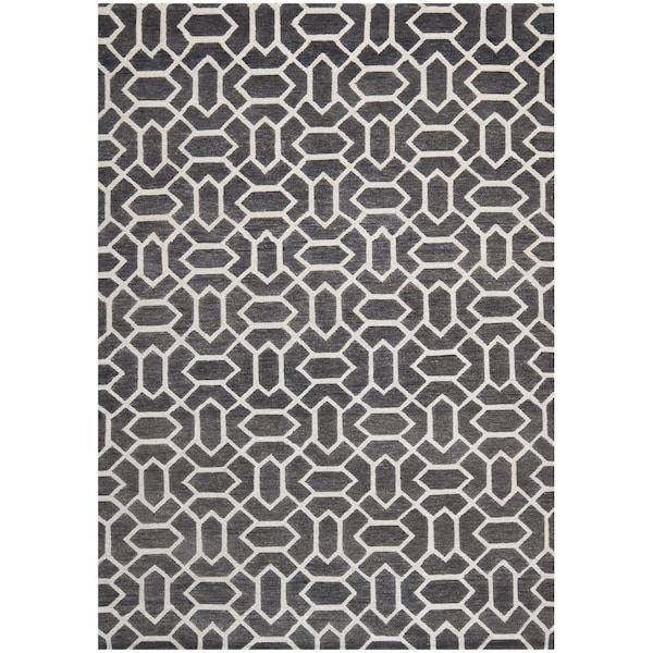 2 x 3 ft. Hand-knotted Santa Fe Nikoleta Modern Wool Rectangle Rug Charcoal & Silver (Discontinued)
