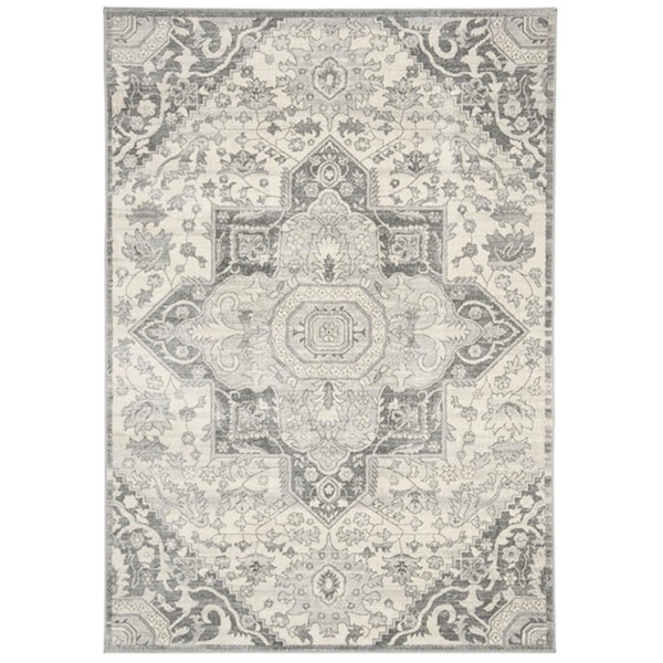 2 x 8 ft. Brentwood Rectangle Power-Loomed Rug - Gray & Cream (Discontinued)