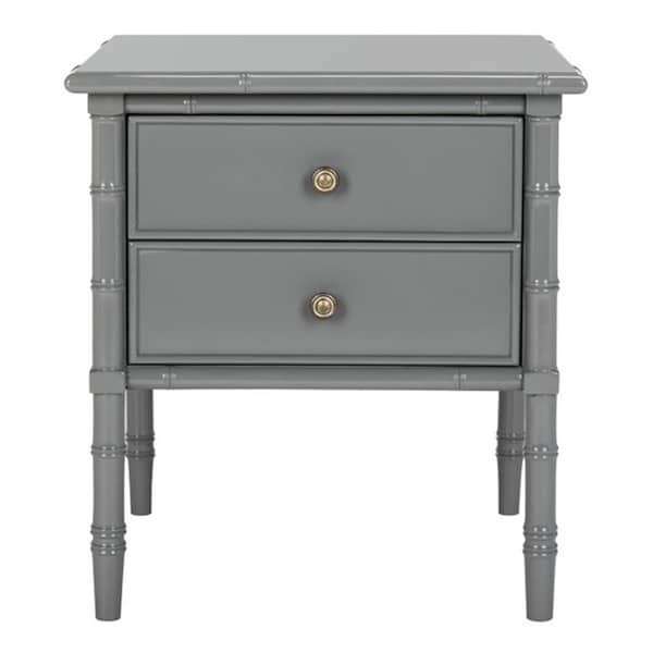 25 In. Mina Modern Coastal 2 Drawer Bamboo Night Stand, Grey