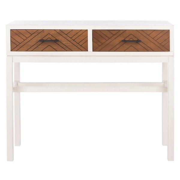 29.5 x 35.5 x 13 in. Ajana 2 Drawer Console Table, Distressed White & Honey (Discontinued)