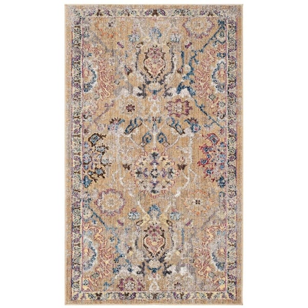 3 x 5 ft. Bristol Power Loomed Small Rectangle Area Rug Camel & Blue