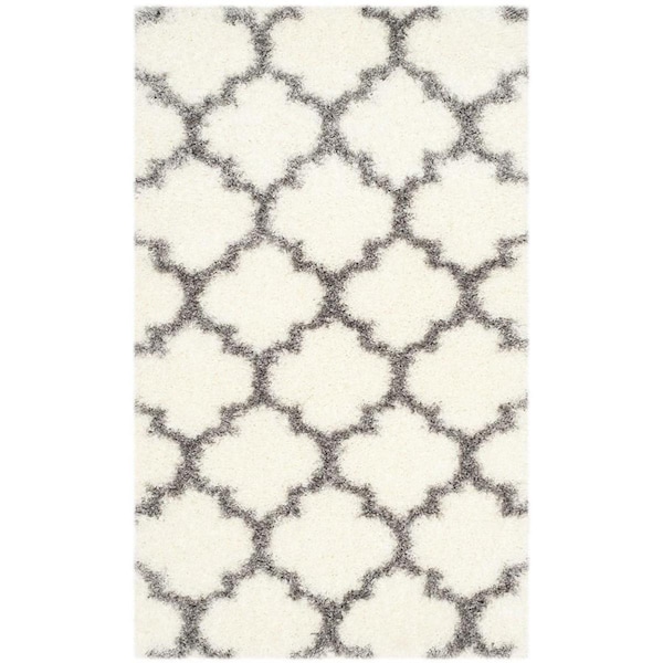 3 x 5 ft. Montreal Shag Power Loomed Small Rectangular Area RugIvory & Grey