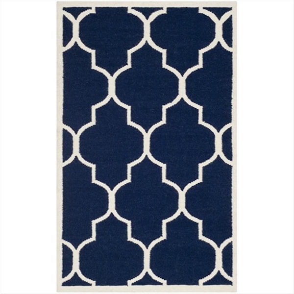 3 x 5 ft. Rectangle Contemporary Dhurries- Navy and Ivory- Flatweave Rug (Discontinued)