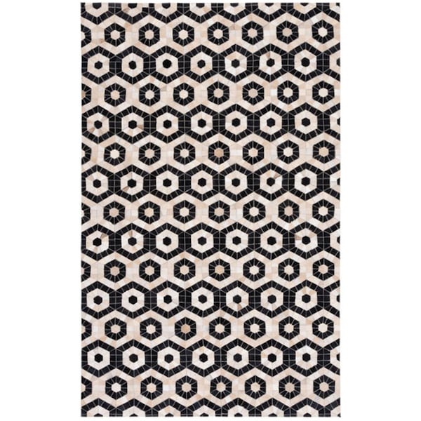 3 x 5 ft. Studio Leather Contemporary Flat Weave Rectangle Rug Black & Beige (Discontinued)