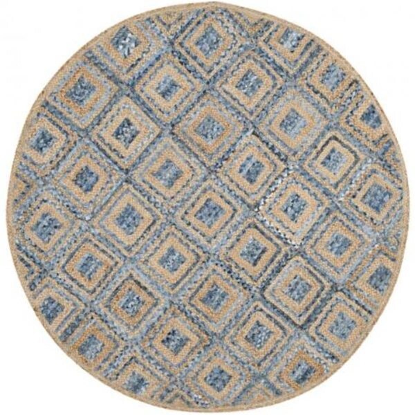 4 x 4 ft. Contemporary Cape Round Rug; Natural & Blue (Discontinued)