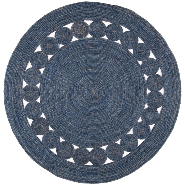4 x 4 ft. Natural Fiber Round Rustic Rug - Navy (Discontinued)