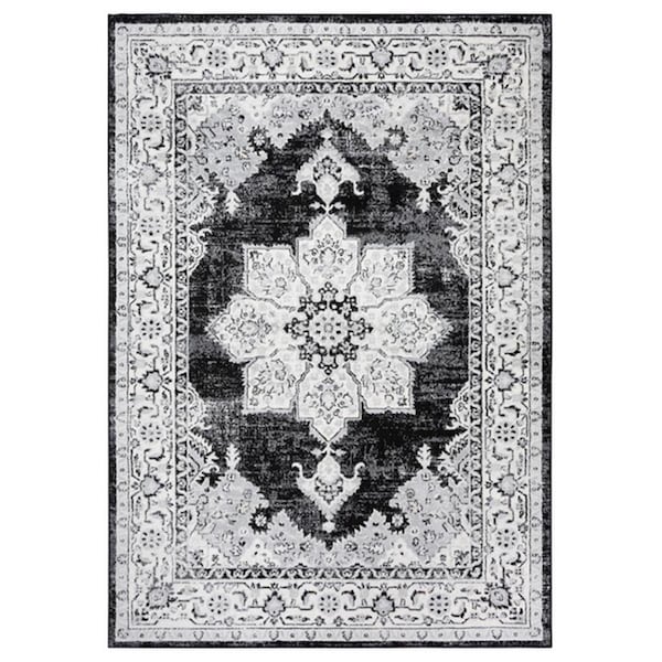 4 x 6 ft. Brentwood Collection Rectangle Power Loomed Rug Ivory & Black (Discontinued)