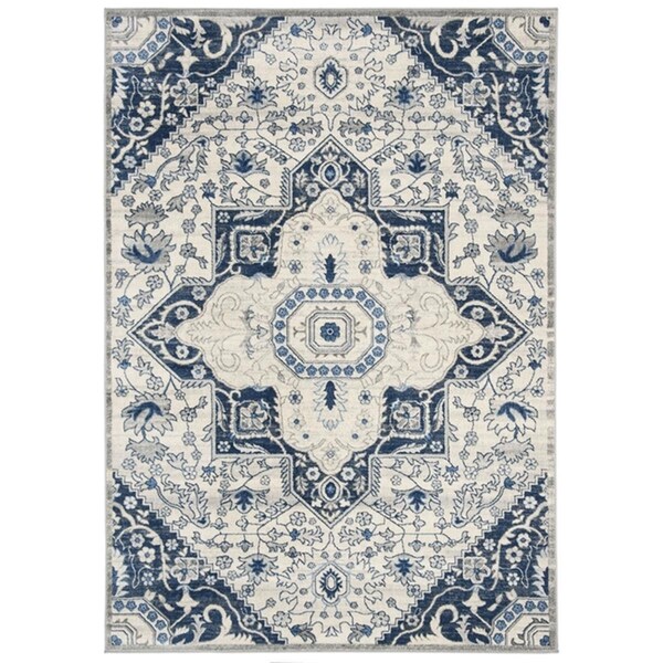 4 x 6 ft. Brentwood Rectangle Power-Loomed Rug - Cream & Blue (Discontinued)