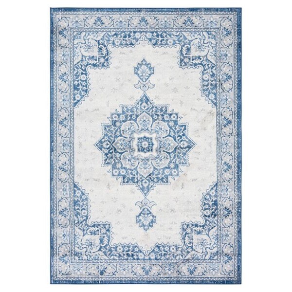 4 x 6 ft. Brentwood Transitional Power Loomed Rectangle Rug Blue & Ivory