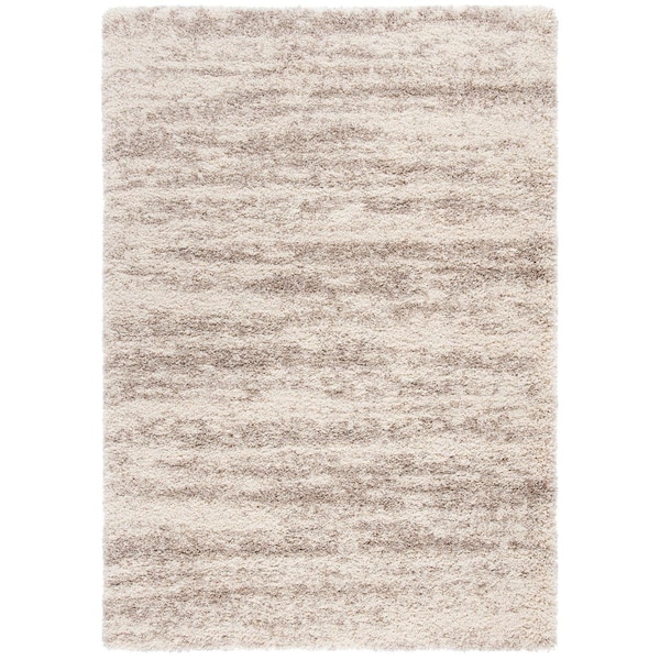 4 x 6 ft. Hudson Shag Power Loomed Rectangle Area Rug; Ivory & Beige (Discontinued)