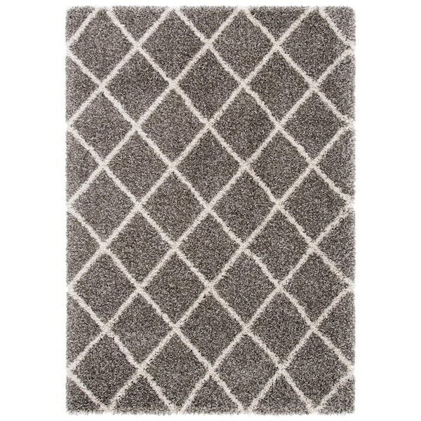 4 x 6 ft. Hudson Shag Rectangle Power Loomed Rug; Grey & Ivory (Discontinued)