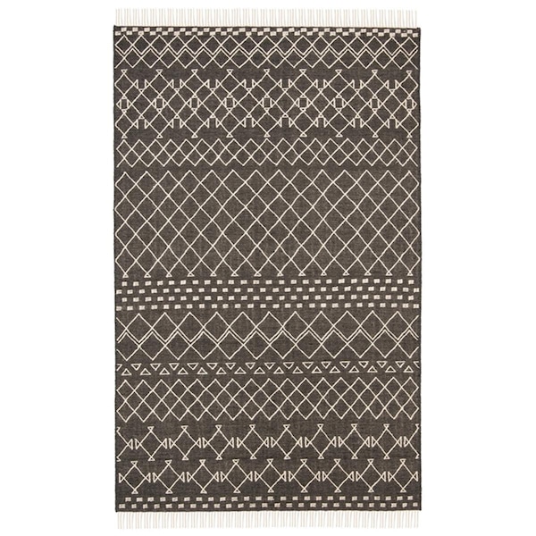 4 x 6 ft. Kilim Rectangle Hand Loomed Wool Rug Charcoal & Ivory (Discontinued)
