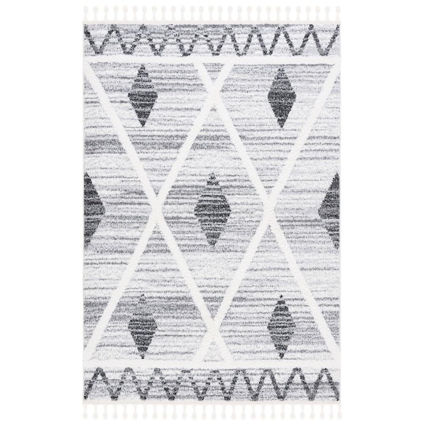 4 x 6 ft. Moroccan Tassel Shag Power Loomed Rectangle Rug Grey & Ivory (Discontinued)