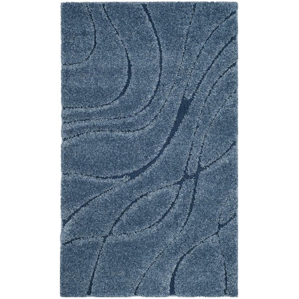 4 x 6 ft. Power Loomed Small Rectangle Shag RugLight Blue & Blue