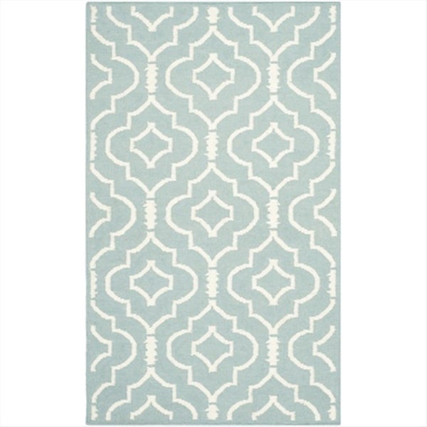4 x 6 ft. Rectangle- Contemporary Dhurries Light Blue And Ivory Flatweave Rug (Discontinued)