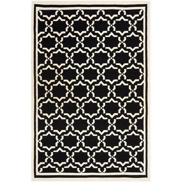 5 Ft. X 8 Ft. Medium Rectangle Contemporary Dhurries, Black And Ivory, Flatweave Rug (Discontinued)
