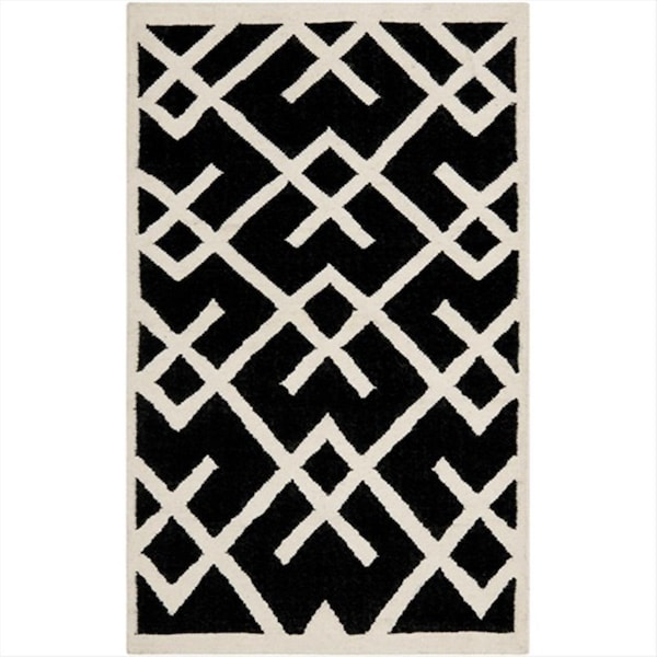5 Ft. X 8 Ft. Medium Rectangle Contemporary Dhurries- Black And Ivory- Flatweave Rug (Discontinued)