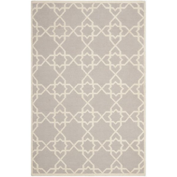 5 Ft. X 8 Ft. Medium Rectangle Contemporary Dhurries- Grey And Ivory- Flatweave Rug (Discontinued)