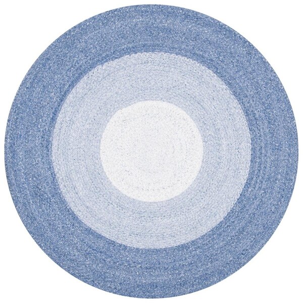 5 x 5 ft. Braided Hand Loomed Round Area Rug; Blue & Ivory (Discontinued)