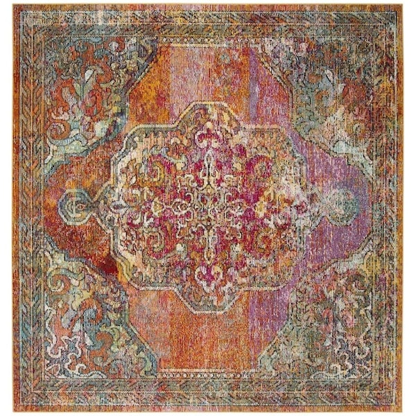 5 x 5 ft. Square Crystal Power Loomed Rug; Orange & Light Blue (Discontinued)