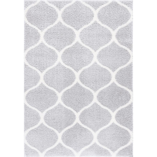 5 x 7 ft. Tahoe Shag Contemporary Rectangle Area Rug; Light Grey & White (Discontinued)
