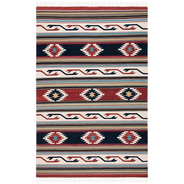 5 x 8 ft. Kilim Bohemian Rectangle Flat Weave Rug Ivory & Rust
