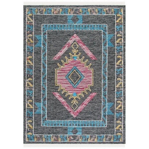 5 x 8 ft. Kilim Flat Weave Rectangle Area Rug Black & Pink (Discontinued)
