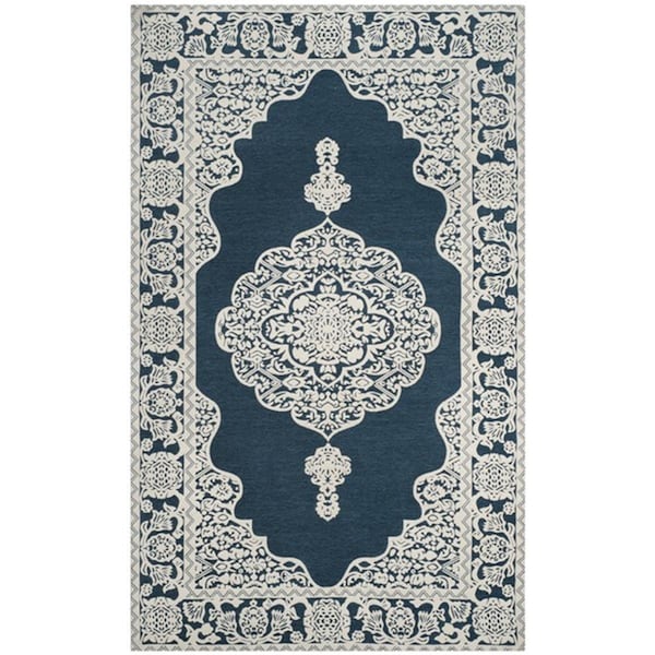 5 x 8 ft. Marbella Handwoven Medium Rectangle Area Rug, Dark Blue and Ivory (Discontinued)
