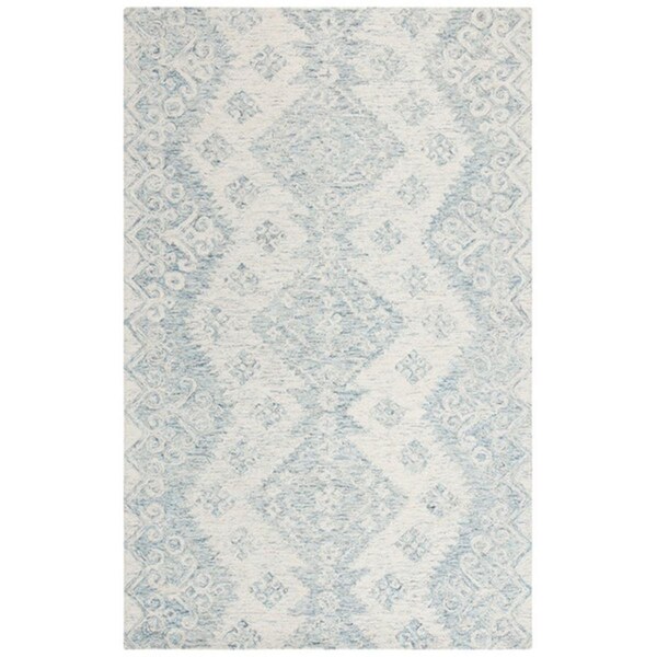 5 x 8 ft. Micro-Loop 951A Hand Tufted Rectangle Area Rug, Ivory & Blue