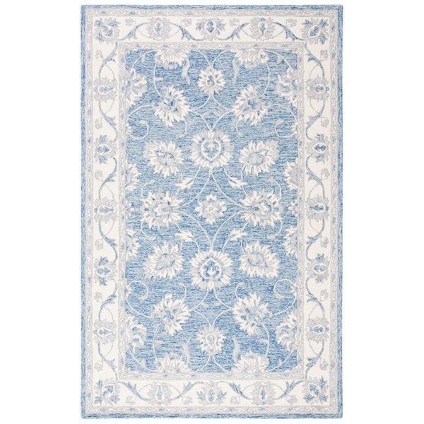 5 x 8 ft. Micro-Loop Rectanglar Handmade Wool Rug Blue & Ivory