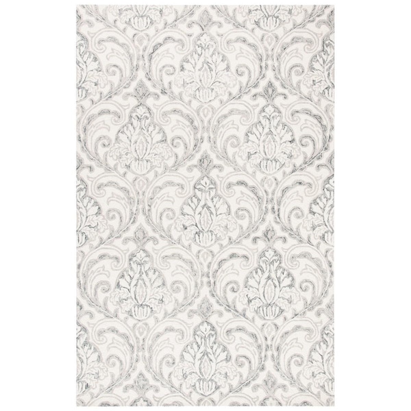 5 x 8 ft. Micro-Loop Rectanglar Handmade Wool Rug Ivory & Grey
