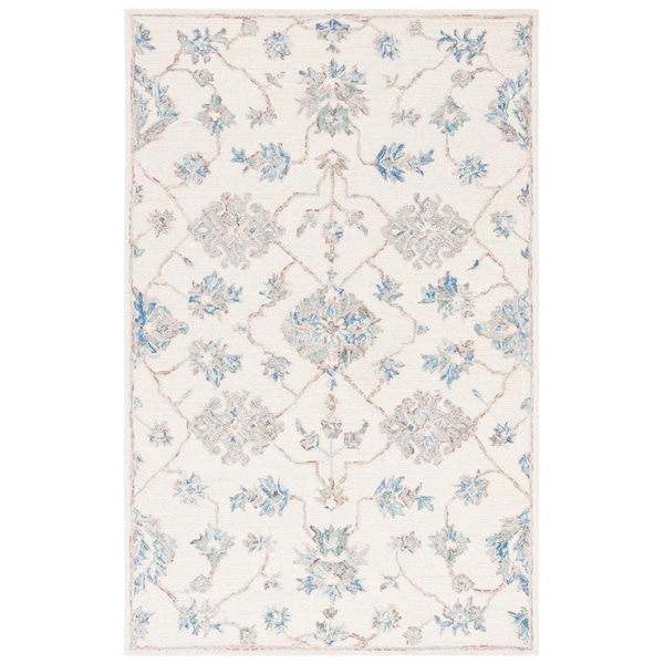5 x 8 ft. Micro-Loop Rectanglar Handmade Wool Rug Ivory & Grey