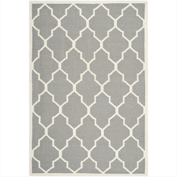 5 x 8 ft. Rectangle Contemporary Dhurries- Grey and Ivory- Flatweave Rug (Discontinued)