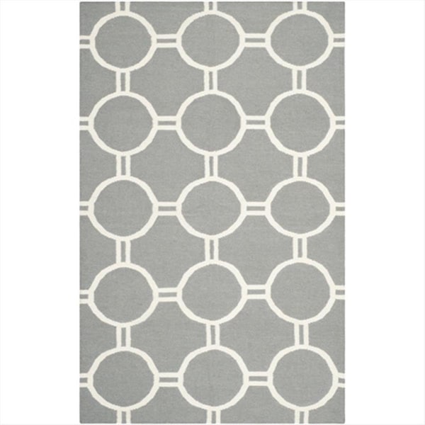 5 x 8 ft. Rectangle- Contemporary Dhurries Grey And Ivory Flatweave Rug (Discontinued)