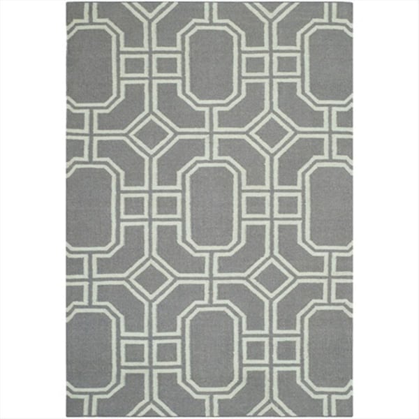 5 X 8 Ft. Rectangle, Contemporary Dhurries Grey And Light Blue Flatweave Rug (Discontinued)